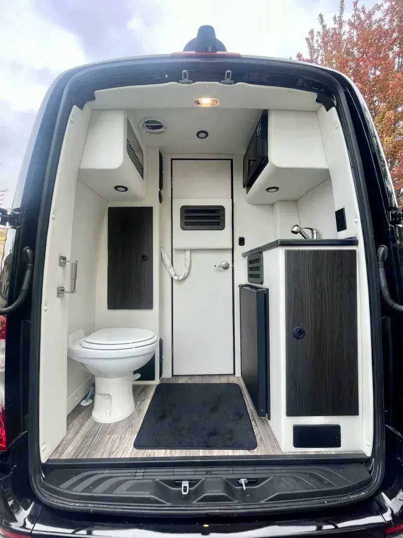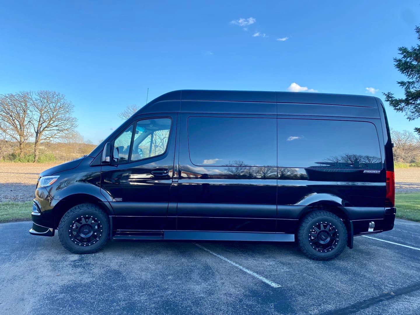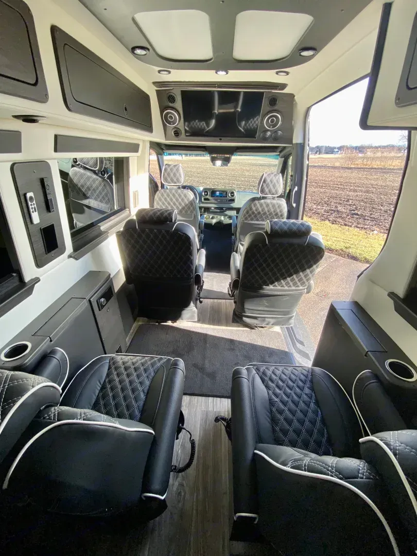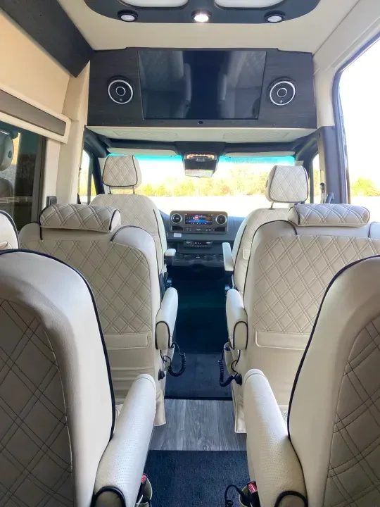 This Sprinter seats 10 of your closest family members or newest friends to carry you on your next journey of creating shared memories together. With 6 plush captain's chairs and 2 bench seats for 4 more travelers, everyone is assured a comfortable ride to wherever you're headed, making the journey just as fun as the destination.